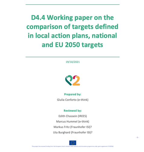In this second part of the assessment, existing Sustainable Energy (and Climate) Action Plans (SEAP/SECAPs) are analysed regarding the targets defined and their relation to overall national and European 2030 and 2050 targets. Targets for emissions, renewable energy and energy efficiency are identified and collected in the available plans, then an harmonization formula is applied to make them harmonized by reference year, target year and unit of measure. Targets made comparable among themselves and with national and European targets, broken down to the municipality level, are eventually assessed.