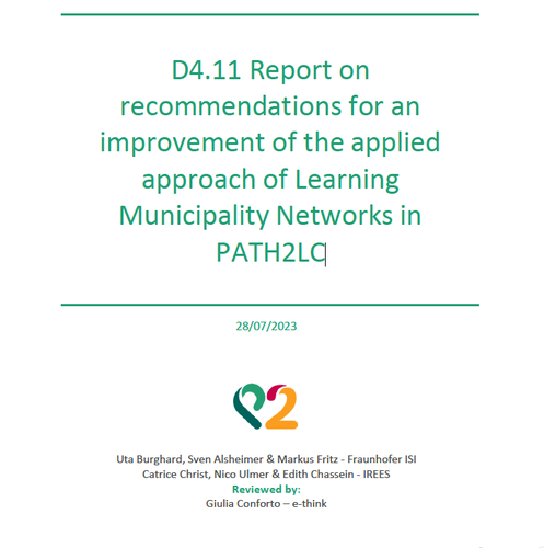 In this deliverable, recommendations and guidelines for an improvement of the applied approach of Learning Municipality Network in PATH2LC are derived. Therefore, the results of the scientific accompanying research in PATH2LC as part of work package 4 are consolidated and recommendations for a future design of the LMN approach are developed. The results of the socio-scientifc evaluation show that the LMN approach was perceived as useful and beneficial for the municipalities. Perceived benefits were the exchanges and collaboration with other municipalities. However, some barriers to participating in the LMN approach, such as lack of time and resources, were stated.