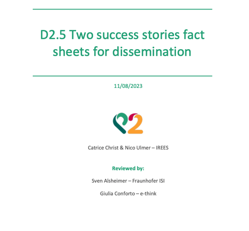 Prepared by: Catrice Christ, Nico Ulmer (IREES), Reviewed by: Giulia Conforto (e-think), Sven Alsheimer (Fraunhofer ISI), Jacqueline Raterink (IREES)